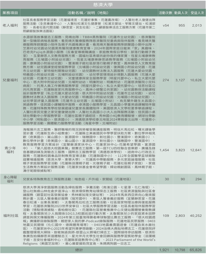 服務學習 113學年度 統計時間:2024/12/31止 資料來源:慈濟年鑑 分享此文: 按一下即可分享至 X(在新視窗中開啟) X 按一下以分享至 Facebook(在新視窗中開啟) Facebook 喜歡 正在載入...