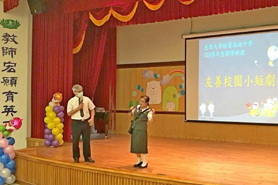 學務處亦針對高中部同學進行友善校園宣導,透過影片及圖片的說明,加深同學對於主題式宣導印象,深入了解「反黑、反毒、反霸凌」等法治觀念。同時,本學期開辦多元社團選課模式,讓低年段的學生與高年段的學生有同樣的選擇基礎,以培育學生從事正當休閒活動,避免學生因好奇或缺乏自信而從事非法行為;各級師長以靜思語—盡本份、得本事,為本學期開學,一同與學生立下的目標,希望藉由多元宣導方式深根友善校園的基礎。各處室的主任及師長透過簡報讓同學了解本學期慈大附中辦理的各項活動與多元學習的特色。
