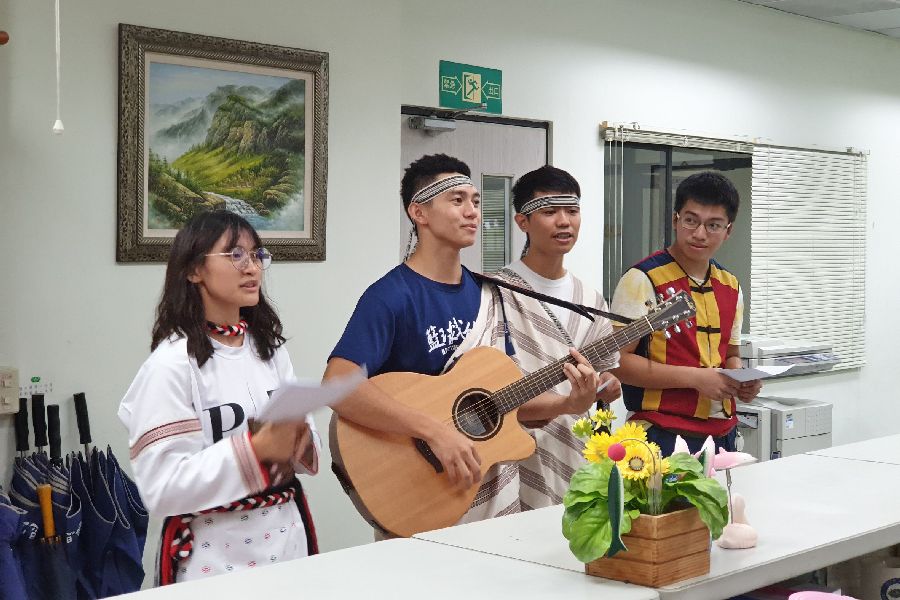 教師節這天學校如常上課,但慈濟大學辦公室氛圍不同於以往,飄揚著吉他伴奏的悠揚歌聲,原來是慈大TAKUBUWAN原民社的學生們,為了感恩學校的教師及行政同仁們平日辛勤的付出,所以特地選在教師節這天,辦理「織情畫語-教師節感恩傳情」活動。「因為有你們的照顧,我們才能開開心心在校園裏學習」原民社的同學說,同學們穿著自己的族服,背著吉他怯生生的走進行政辦公室,在簡單的介紹之後,就以族語歌謠「重點是」這首歌,向辦公室裡的老師及大哥哥大姐姐們表達感謝之意。在優美的歌聲結束後,還送上由社員們親手一線一線編織完成的太魯閣族織帶,藉由這項可能即將失傳的原住民手工藝品,表達最誠摯的祝福。