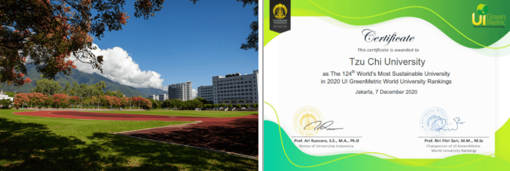 由印尼大學(Universitas Indonesia, Integrated Laboratory and Research Center)主辦的「世界綠能大學排名評比(UI Green Metric)」,評比成績於12月7日揭曉,2020年全球共有85個國家、912所大學參與此項評比,較2019年再增加132所大學參加角逐,臺灣則有26所大學參與評比。慈濟大學自2017年起參與排名評比,當年度即獲得世界排名第200名,至2020年已躍升至124名,臺灣排名為第12名。