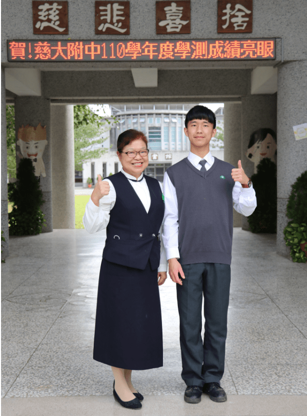 今年花蓮縣學測考得最優成績的周雨霆,從慈濟幼兒園、小學、國中一路直升到高中,在慈中校園生活了14年,慈中友善的人文環境,培養他不易受外界干擾的穩定心性,讓他能在學測獲得國、英、自三科滿級分的好成績,更獲得全縣59級分的最佳表現。