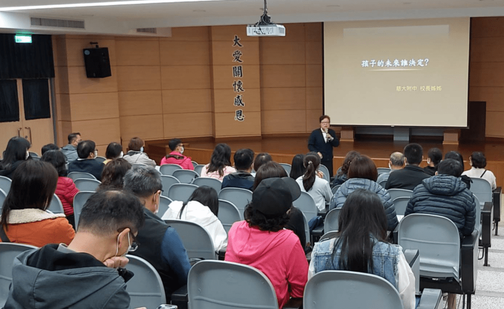 大學入學管道多元,親師座談會當天,學校安排大學志願選填說明會,讓家長與學生們更了解繁星、申請選填志願的注意事項及小技巧,李玲惠校長與家長們分享:「面對抉擇,要有態度、眼界與想法,選填志願要知己知彼,做好抉擇與行動」,提醒家長要與孩子心談,透過以終為始的提問:列出您最想要的三份工作?為什麼您會想要這份工作?10年 20年後這工作存在嗎?這個職業需要什麼條件?幫孩子澄清,帶著孩子認清現實、拉高格局,去迷思、定方向、安情緒,陪伴孩子做好抉擇與行動。