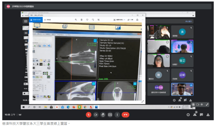 至於選擇其他醫院實習的學生,統一參與慈濟科技大學醫放系線上實習課程,採一週五天、每天8小時,共160小時。慈濟科技大學醫學影像暨放射科學系主任張國平表示,線上實習課程涵蓋醫學影像技術學、放射線治療技術、核子醫學診療技術三大類別,就像實體實習過程中的專題報告,儘管比不上第一線操作儀器的直接了當,卻能補強學理的專業背景,讓學生在八月臨床實習時,能有進一步的認識,也更有底氣。