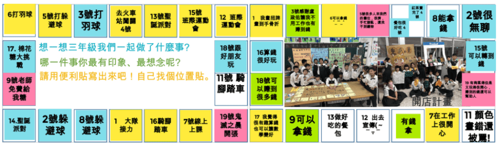 休業式特別安排了導師時間,讓班級師生透過雲端溫馨互動。國小部三年二班蘇盈方老師帶著學生透過Jamboard給同學鼓勵與讚美,也回顧整學期重要活動對自己的意義。國小部一年四班余宛蒨老師設計一張獎狀帶著孩子在最後感謝爸爸媽媽這一段時間陪伴學習,引導孩子思考如果沒有家長在家陪伴他們也很難順利完成線上學習。導師們透過導師時間給孩子們最好的感恩教育。