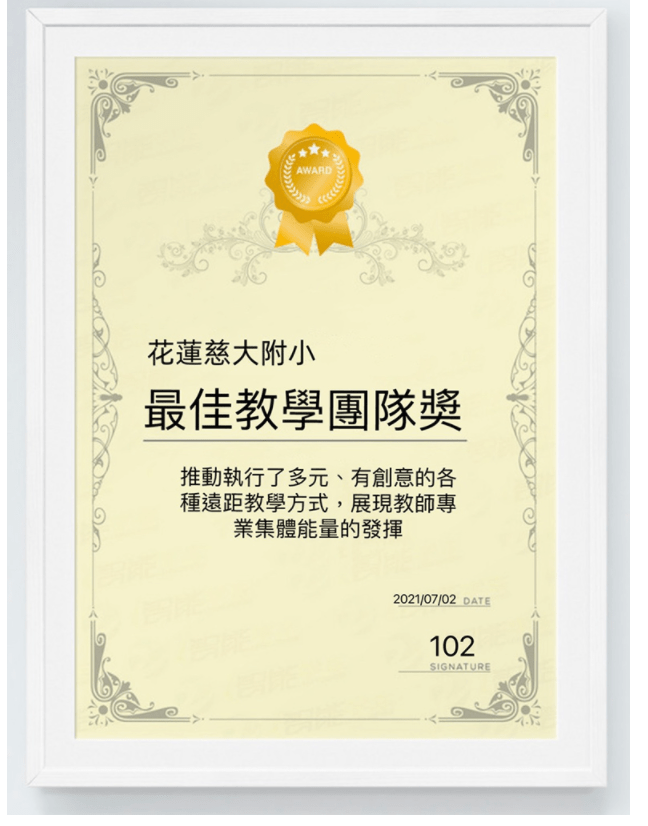 國小部家長因為孩子小感受最深,特別是陪伴孩子看到影片中老師在停課後,一連串的備課與努力後,一年二班的家長特別頒發一張「花蓮慈大附小 最佳教學團隊獎」給國小部全體老師,感恩老師努力推動多元、創新的遠距教學,這是對老師們最大肯定。國二善解班周士甯同學的媽媽表示,今天的線上休業式,帶孩子們回顧這些日子,但更重要的是把善的種子種進孩子的心田,很有意義。