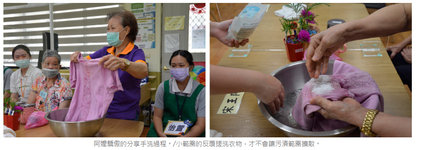 所以,疫情後的課程設計偏向如何減緩失智長輩退化,並重拾生活技能。花蓮慈濟醫院精神醫學部職能治療師王玠均表示,手洗衣服能喚起阿公阿嬤早年回憶,藉由重新熟悉和再度練習,可以訓練記憶力,活化大腦功能。不少阿公阿嬤都說,以前可是到大水溝、用搗衣杵洗衣服,哪像現在家家戶戶都有洗衣機,「現在的少年ㄟ足好命,攏免洗衣!」