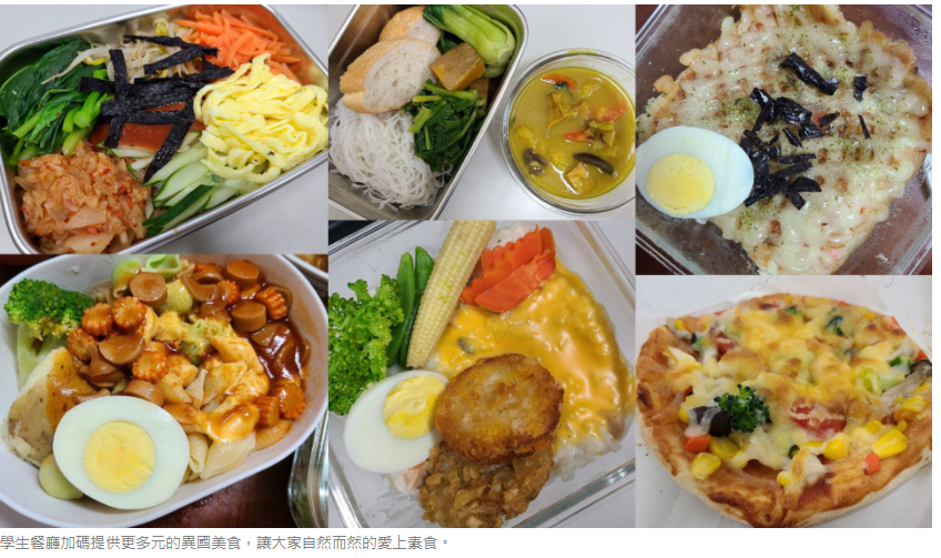 尤其,新型冠狀病毒肺炎蔓延,至今仍未平息。證嚴上人多次呼籲「唯一的靈方妙藥就是人人持齋戒茹素,表達一念虔誠」,希望人人茹素,凝集善業,消弭災難。所以,人文室不但邀請營養師暢談「我的健康蔬食餐盤」,或正夯的Vegan純素飲食,還結合學生餐廳,加碼提供更多元的異國蔬食,像是搭配燕麥奶的三明治輕食、披薩、日式飯糰、燉飯、義大利麵、大阪燒、越南麵包等,讓大家自然而然的愛上素食!