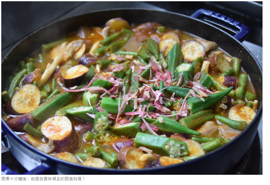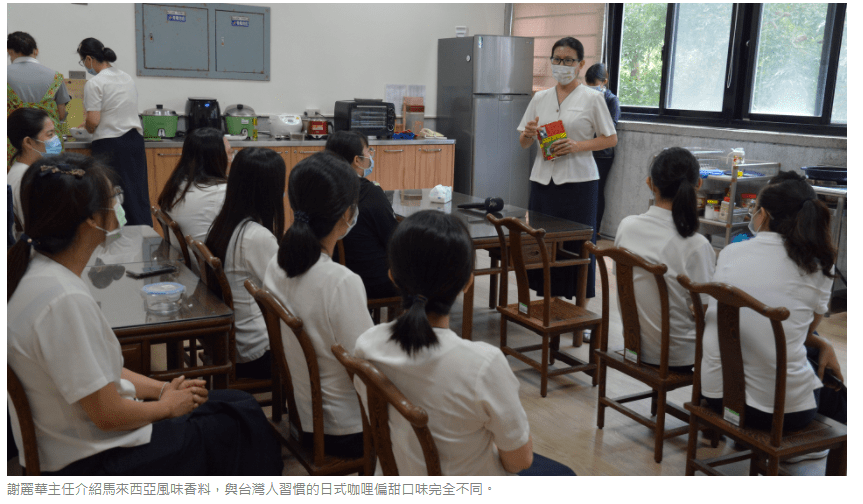搭配馬來西亞各種風味的香料包,在慈濟科技大學人文室主任謝麗華的巧手下,10分鐘就完成色香味俱全的蔬食咖哩!麗華主任笑說,沒有什麼艱深的學問,就是善用馬來西亞的爆香烹調習慣,再加上椰漿,「靠料理手法的變化,讓美味瞬間升級」。尤其,與台灣人習慣的日式咖哩偏甜口味完全不同,如果怕辣,也可加點醬油,就能降低辣度。