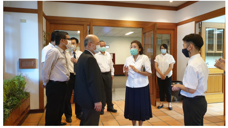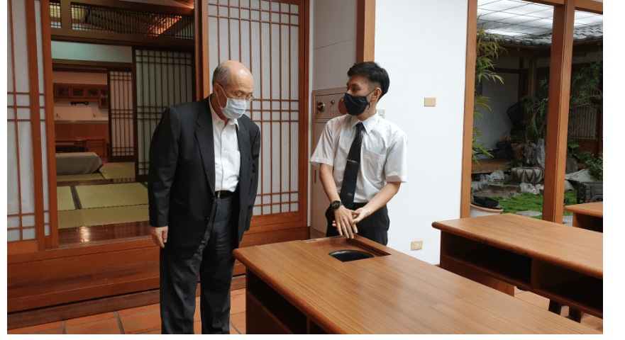 由顏瑞鴻副校長、人社院黃麗修院長、國際處、人文處等陪伴詹副董事長一行人進行校園參訪,濃濃人文氣息的書畫、茶道教室、花道教室讓大家印象深刻。黃麗修院長表示,慈大重視境教,即使是小小的角落也充滿人文氣息。人文處陳健聰組長也向大家說明,通識課程茶道課是學生最愛,選課秒殺外,同學們常常是下了課還繼續留下來,人文教室讓大家在繁忙的課業外,有一個靜心的時間,與自己好好對話。