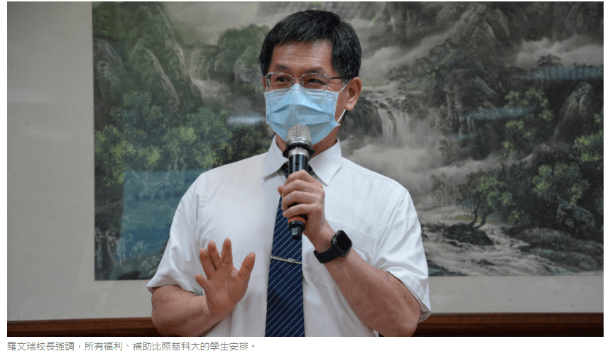 配合最新防疫政策,九月十三日慈濟科技大學開學後,將全面採遠距教學,直到十月四日才恢復實體授課。至於學生宿舍,也採「只出不進」的原則,一旦離宿返家,就不能再回到宿舍(扣除實習生和工讀生)。若賃居在外的工讀生,得出示三日內快篩證明才能入校工讀。