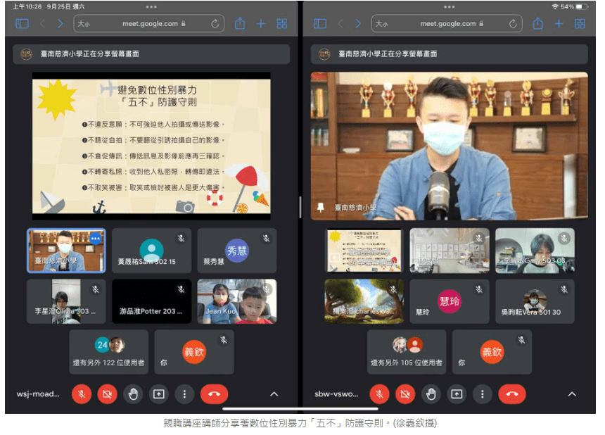 「哈囉!各位家人們早安!」小一新生的導師開心的與家長們在空中相會。為配合政府的防疫措施,開學以來家長無法進入校園,想見到孩子班級新老師的廬山真面目真的很難。2021年9月25日的臺南慈中很不「疫」樣,老師們帶著耳麥,以親切迷人的微笑眼神在鏡頭前與大家相見歡,展開了一場溫馨幸福的線上親師交流會。