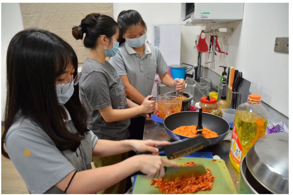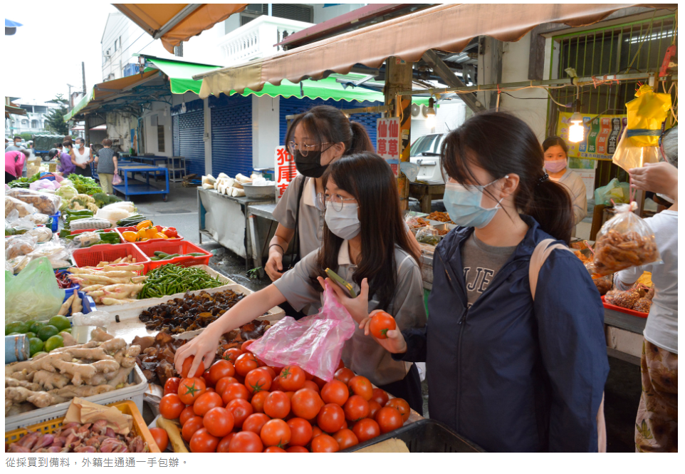 行銷與流通管理系三年級學生林涵潔(馬來西亞籍)表示,國際學生聯誼會主導的異國美食募心募愛,已行之有年。有了師長的提點,以及學長學姐的經驗傳承,即使遇到突發狀況,也不會不知所措。像是攪拌機發生故障,立刻改用杵臼和刀具,採手工方式剁碎香料,絕不耽擱上菜時間,也不找任何藉口推託。護理系二年級學生郭佳文(馬來西亞籍)表示,無償付出不僅是作為社團幹部的責任感,更因為自己是施打疫苗的受惠者,想讓更多人也得到幫助。