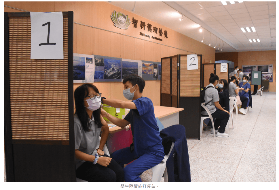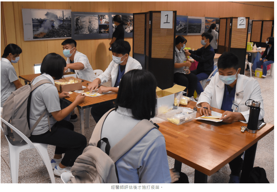 十月十五日,慈濟科技大學五專護理科一至三年級學生接種BNT疫苗,共有16個班級,786名學生。
