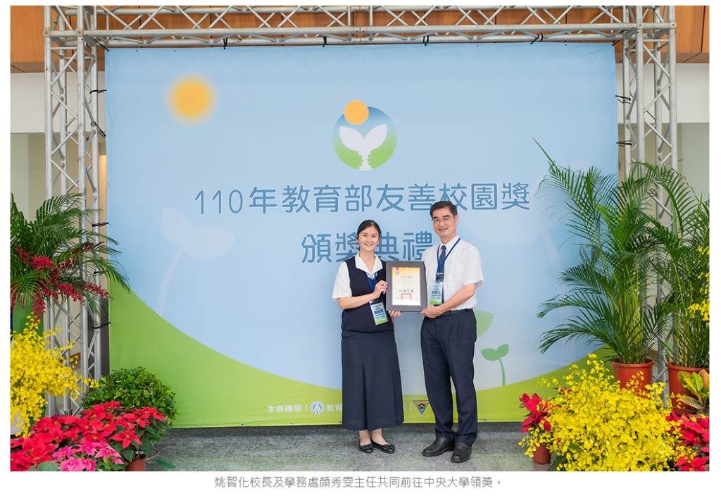 學務主任顏秀雯分享:感恩教育部對學務工作推動的肯定,也感恩各處室及親師生共同合作,努力參與,才能營造出友善校園的環境。學務處積極辦理多元創新友善校園的活動,更是廣獲親師生好評及各大媒體採訪報導。以孩子為學習的主體,希望能建立孩子的好品格與自信心,讓孩子努力成為更好的自己。