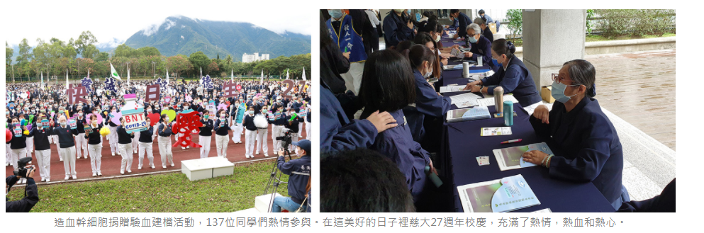 運動場上有競賽、有歡笑、有汗水、有淚水,而離開操場,則是有造血幹細胞捐贈驗血建檔活動,137位同學們熱情參與。在這美好的日子裡慈大27週年校慶,充滿了熱情,熱血和熱心。