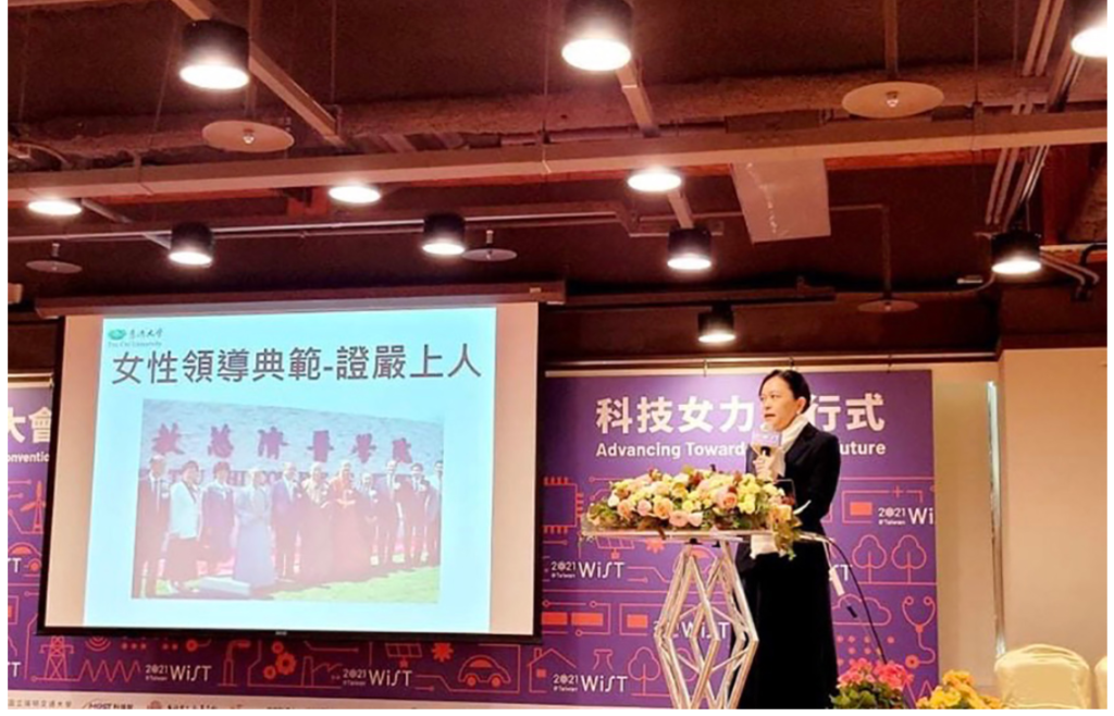 「2021女科技人大會」於12月11日在台北舉行,今年大會主題為「科技女力進行式」除邀請蔡英文總統進行線上致詞外,花蓮慈濟大學校長劉怡均特別獲邀在「領導角色,帶領前行」時段分享如何培育女性領導者。