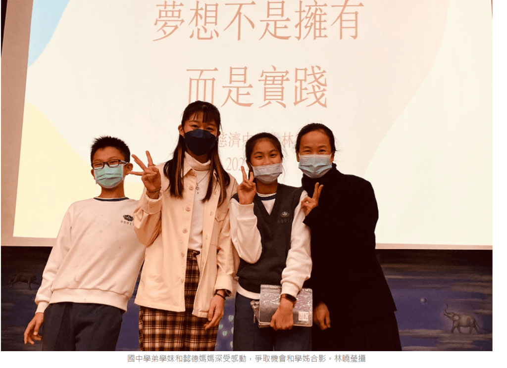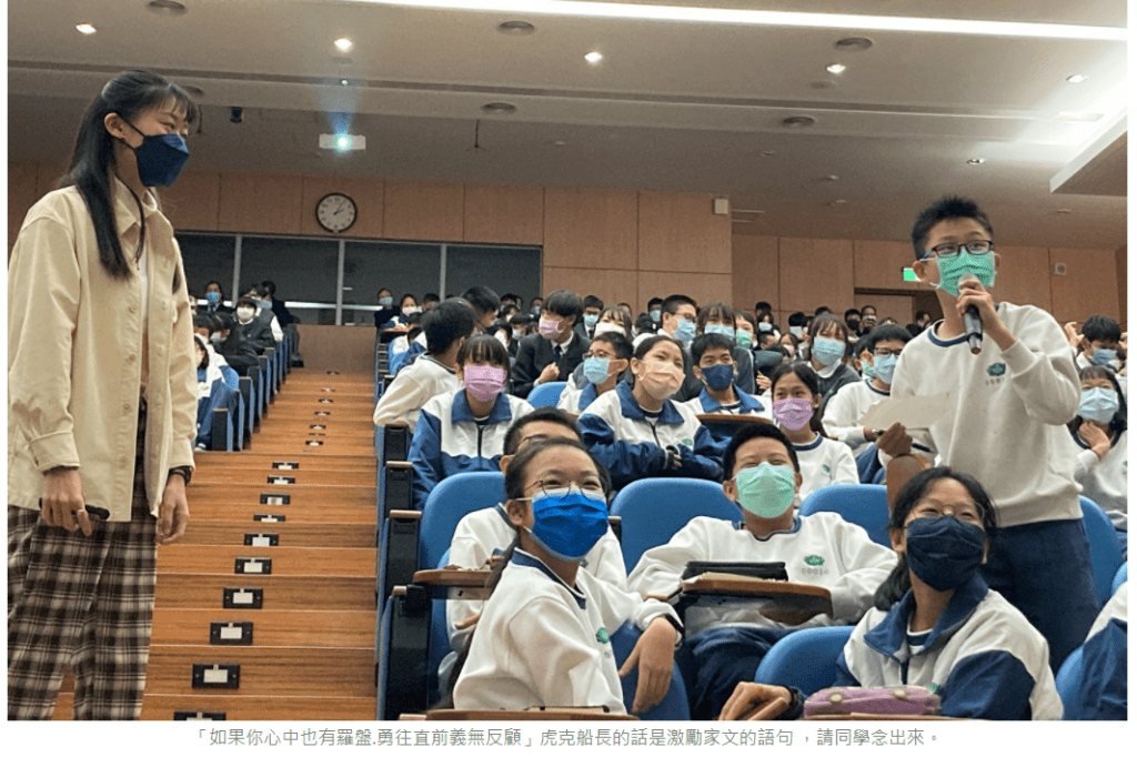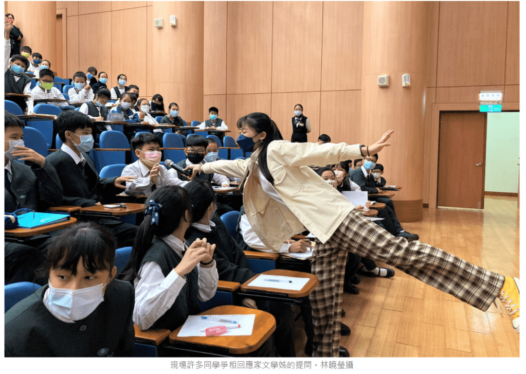 演講結束前,全場師生為家文學姊即將參與的2022聽奧賽事而鼓掌加油!國中正是探索自己的時期,此刻能見證生命鬥士的堅毅和勇敢,讓同學們在探索中確立正確的方向及價值!