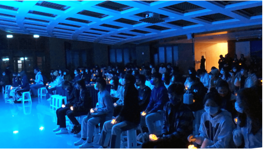 這次活動兩校有40多位慈青與社員共同承擔工作人員。多次籌備會議,使兩校夥伴間不僅共事,亦能共識。活動進入尾聲,播放精舍師父的祝福影片,並點傳心燈,感恩並祝福與會的貴賓、民眾與學員,邀約大家明年慈青推蔬「心」年,也能前來共聚福緣,在寧靜祥和的氣氛下,溫暖每個人的心。