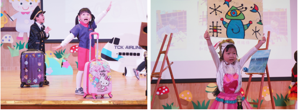 知足班的小朋友在這學期「一起愛地球」的方案課程中,從探查校園開始,孩子們努力減少垃圾的產生,並用戲劇告訴大家地球發生了什麼事,推動愛護環境減少垃圾行動,邀請大家一起保護地球。包容班演出他們在方案課程「種菜趣」中閱讀的《蔬菜逃家記》繪本,從蔬菜的第一人稱角度出發,以「他們」被人遺忘在冰箱並離家出走的故事,呼籲大家要珍惜食物。全班都是小班生的大愛班,從第一天哭哭啼啼上學,到今天能流暢的演出「顏色轉盤」,將他們在生活中的繽紛色彩,及顏色所代表的不同意義和功能介紹給現場的家長們,展現了寶貝們的學習力與成長。感恩班的孩子們則改編繪本《包包流浪記》,在扮演情境中,依據角色的特質用不同的語言來表達,並辨識文主角的情緒,用自己的方式展演出來,還展示自己動手做的手工包,讓家長們驚嘆不已!善解班的孩子們一開始連美勞區的教具怎麼操作都不會,但是透過自己慢慢去摸索、討論、經歷失敗後,在「畫家帕布羅」戲劇演出中展示每個孩子們獨一無二的創作!「慈幼好兒童」貼紙不只是一張獎勵的貼紙,更是代表你是一位有禮貌、愛整潔、能夠手做好事、腳走好路並做好自己本分事的小朋友,合心班的寶貝以戲劇「慈幼好兒童」展現自己這學期以來的成長與改變!看到孩子令人驚艷的演出,家長肯定的表示,看到孩子們的主題教學以舞台劇的方式表演出來,真的很感動,相信老師一定花了需多的心思在教導孩子。真的很感恩慈幼師長,孩子能夠在那麼好的環境下長大,真的是孩子的福報。