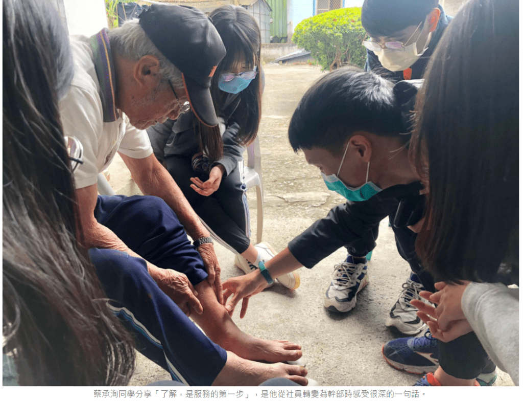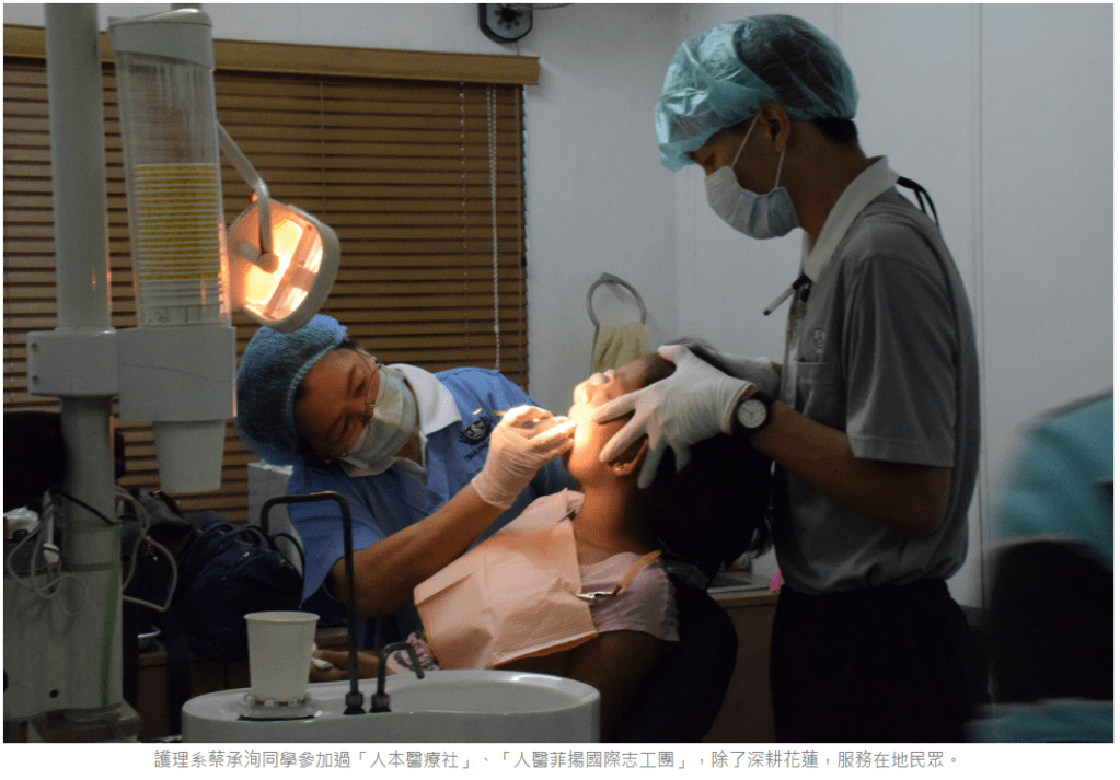 青學獎獲獎學生護理系蔡承洵同學參加過「人本醫療社」、「人醫菲揚國際志工團」,除了深耕花蓮,服務在地民眾,亦跟隨師長及慈濟委員到菲律賓偏鄉參與義診及感恩戶訪視。蔡承洵同學分享,「了解,是服務的第一步」,是他從社員轉變為幹部時感受很深的一句話。如今,蔡承洵同學亦於花蓮縣消防局擔任救護義消,持續投入服務,也發揮護理學系所學良能。