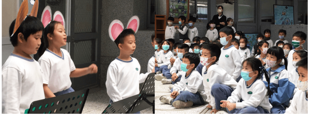 這裡不是演藝廳,更不是動物園,而是在慈大附小的共同空間,三年級孩子們利用下課時間快閃–英語讀者劇場的驚艷演出!