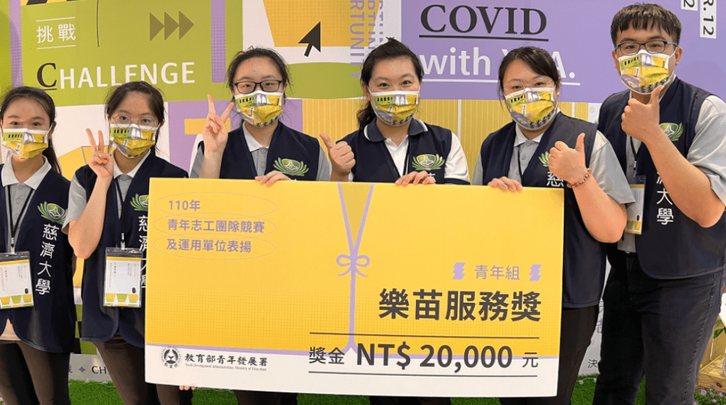 由教育部青年發展署舉辦的「110年青年志工團隊競賽」於3月12日舉辦,今年「慈濟大學無毒有我志工隊」初試啼聲首次參與競賽獲得「樂苗服務獎」,慈大還有另外兩隊「巴奇克 Pajiq 希望志工隊」及「慈濟大學人本醫療社-松浦文化健康營」獲得「佳行獎」。