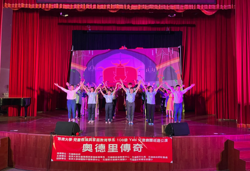 慈大YABI兒童劇「奧德里傳奇」開始第一場國小巡演,10日在花蓮縣光復國小演出,包括附近的明利國小、明利附幼和西富國小的小朋友一同參與。小朋友從一開始到結束都很興奮,一起倒數期待戲劇的開始,還跟著台上的大哥哥姊姊唱唱跳跳,成爲小勇士來協助主角們。