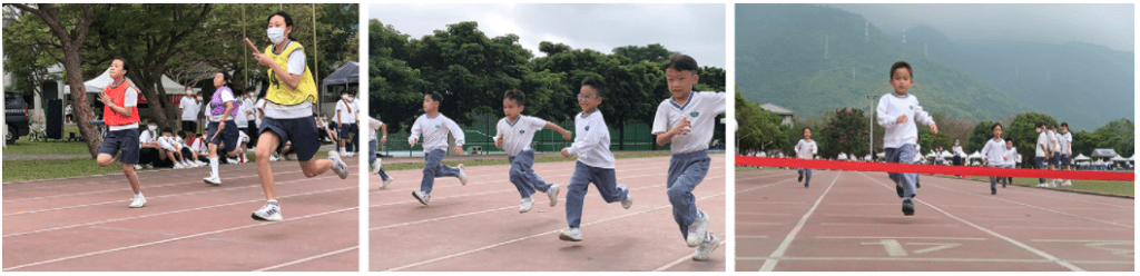 同時間,運動場上則充滿了加油吶喊聲,從三歲幼兒園的小萌娃到18歲的高中生,無不使盡全力爭取佳績,以強健的體魄與熱情,在運動場上突破自我,更充分展現運動家精神。