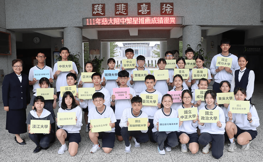 台大、清大、成大、陽明交大、政大還有兩位中、西醫學系,慈大附中應屆學生參加111年度大學繁星推薦表現優異,超過25%畢業班學生錄取心目中第一志願的頂尖大學校系,共有44位學生錄取國內頂尖公私立大學,其中19同學位順利推甄上台清交等頂尖國立大學,包含錄取臺灣大學法律系的葉承恩、清華大學生命科學系的陳寬宇、陽明交通大學資訊工程系的黃哲宇及通過慈濟大學醫學系第一階段篩選的樊蓁蓁等。全校親師生同賀順利通過大學繁星推薦及特殊選才,提早成為大學生的49位同學。