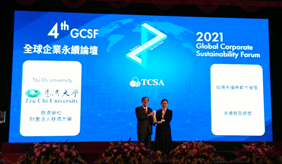 審查委員肯定在善盡社會責任面向中,慈濟大學各項積極作為且獲顯著成效。為照顧東部地區原住民及經濟不利學生,整合校內資源輔導原住民學生,休退學率遠低全國平均。與慈濟基金會教師聯誼會及公部門合作推動「無毒有我」之反毒教育宣傳備受委員肯定;慈大撰寫之CSR報告書榮獲2021第十四屆「TCSA台灣企業永續獎」報告類大學組銀獎,以及綜合績效類之「台灣永續典範大學獎」。慈大USR教學研究中心更與花蓮縣府、花蓮高農進行產學合作,打造智慧農業示範基地,以智慧監控水耕種植並將水耕數據上傳雲端資訊共享,推動花蓮農業智慧化。