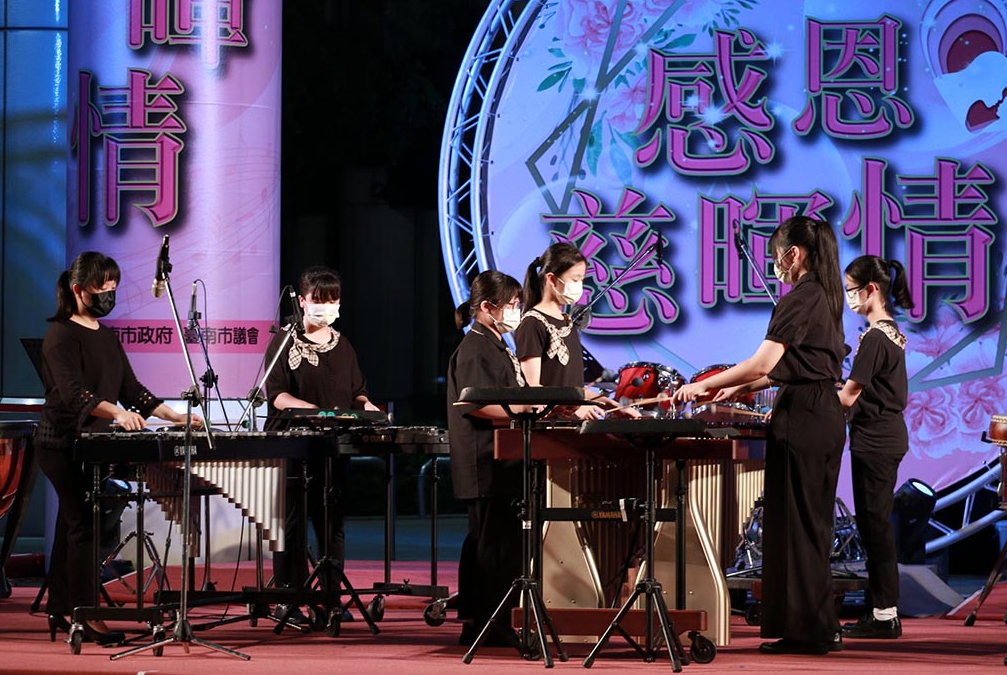 國小部顏秀雯主任在學期初接獲市議會邀請演出訊息時,規劃集結國小部合唱團、跨部打擊樂團、手語小天使、弦樂團及舞蹈團,攜手合作共同演出,欲表達對敬愛母親最崇高的感恩。但在接近演出前疫情升溫日趨嚴峻,考量小學生尚未施打疫苗,緊急更換音樂會表演曲目,疫情的考驗,卻也展現學校行政團隊優質、高效率的溝通協調與應變能力,演出當天由高中部打擊樂團和指導老師何春頤老師所屬「悸動元素打擊樂團」,精采演出櫻之川、千本櫻、魔法公主等十七首精彩曲目。