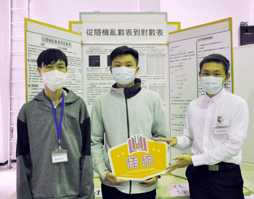 何彥廷、王朝宗、林胤佑同學的作品「從隨機亂數表到對數表」獲得數學科佳作,由賴品志老師指導。
