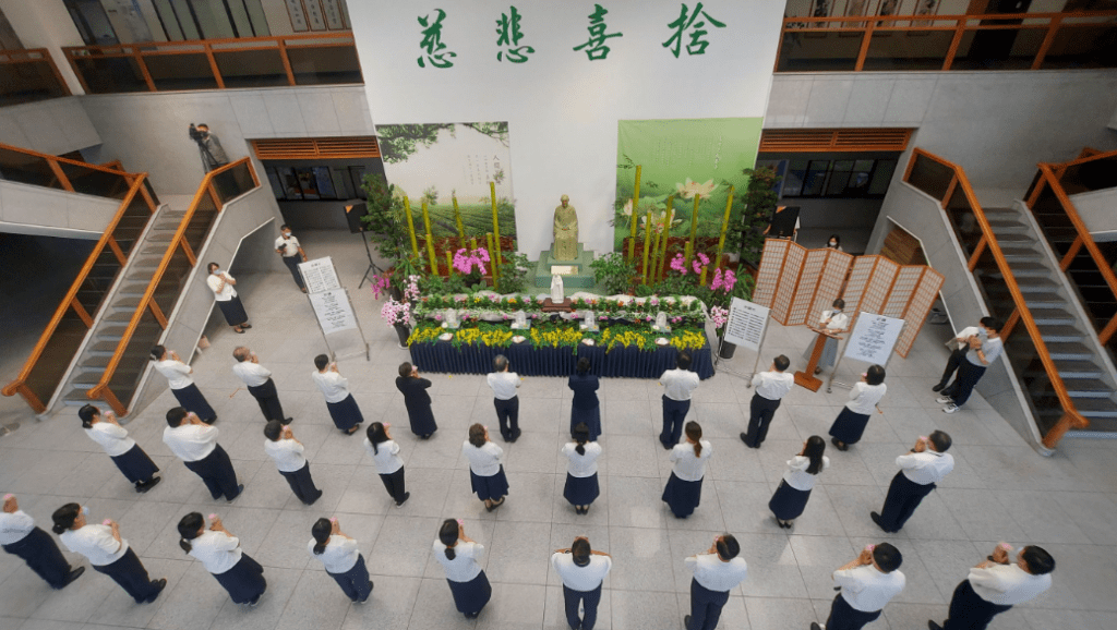 兩千五百年前,佛陀出生於帝王之家,卻因為看見人間疾苦,發願生生世世度化眾生。慈大劉怡均校長帶領師長同仁,雙手合十虔誠感念佛恩、親恩、眾生恩。疫情蔓延三年,奪走數百萬條人命, 烏俄戰爭更是讓全球蒙受非戰之罪,貧者更貧,弱者更弱;唯有人人謙卑向天懺悔向地感恩,齋戒茹素護生不殺生,才是走出困境的靈方妙藥。