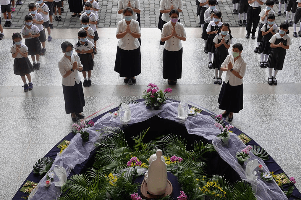 臺南慈中中學部、國小部及幼兒園在5月18日這天舉辦浴佛典禮,五月適值佛誕日、母親節、慈濟日三節合一殊勝日子,為報佛恩、父母恩、眾生恩,以虔誠之心回歸與佛同等的清淨本性,近日來除了新冠疫情外,普天之下仍然天災人禍不斷,俄烏戰爭的戰火未曾停歇,此刻平安更應該感恩。期盼藉由虔誠一念心齋戒懺悔,共同以虔誠的心,為天下造福祈安。