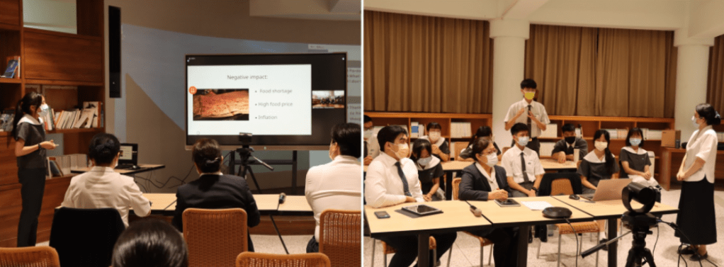 「走讀世界」這門課的授課教師李駿宏表示,感恩國際教育處的主動協助牽線,讓慈中同學在疫情下,仍能與遠在美國德州的同學一起共學並深入探討此一國際重大議題。用英語進行簡報並討論國際議題,對台灣學生是有難度的挑戰,沒想到學生除了用流利的英文對議題做出超出水準的簡報,在雙方交叉對談時,更展現積極且熱情的態度發問及回應問題。這樣特別的線上共學交流,的確激發出孩子的潛能,表現出優於於平常的表現。