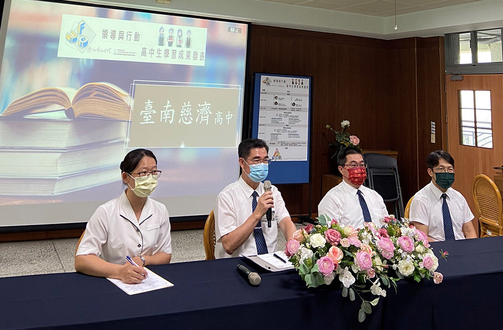 臺南慈濟高中於110學年順利獲得成大高教資源投入高中選修課程,成大社科院之統整課程「領導與行動」,首次與臺南市南科實中、臺南慈濟高中合作藉由大學生與高中生的跨域交流,讓大學生發揮領導能力;高中生發揮創造力,共同進行社會議題之探討。高中生在和大學生的小組合作中,更能達到典範學習效果,讓高中生針對自身感興趣的社會議題可以看得更遠,同時進一步在學生跨域交流中激盪更深刻的學習歷程。