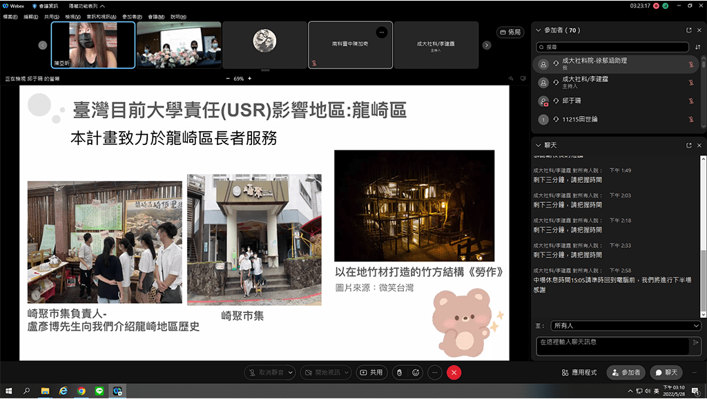 於5月28日跨域及跨校際的高中生學習成果發表,由臺南慈中與南科實中共12組的議題包含自身社區考察、地方創生與西拉雅文化保存、流浪動物倡議、老街復興與新興產業、房價與在地小農、後疫情時代防疫意識、安平與林百貨的商業變遷以及班級經營等,看見高中生對於在地議題、生活議題的關懷,更展現社會科學必備的洞察力,同時也能看見在大學生介入後,高中生們產生的質變,這都是學習探索過程中非常寶貴的收穫與經驗。