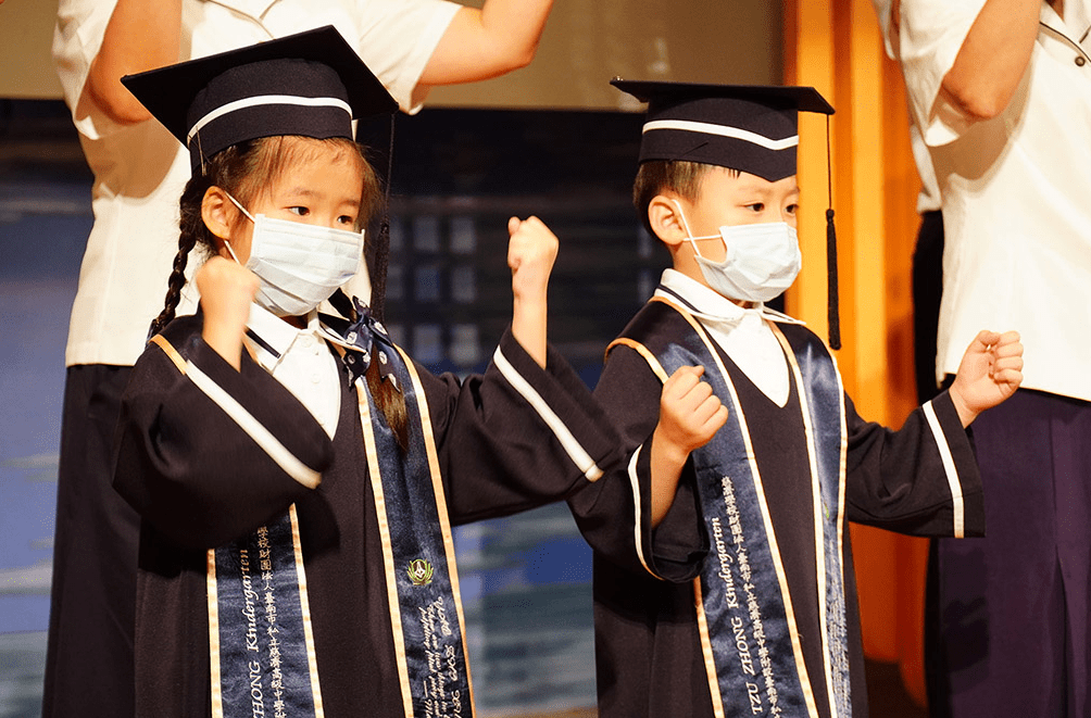 時光飛逝,校園裡黃金雨(阿勒勃)紛紛飄落,又到了離別時刻,這次畢業典禮包括幼兒園、國小、國中、高中四部畢業生共計461位,其中初創設的第二屆幼兒園19位畢業生們,穿著慈中幼兒園專屬的學士袍和榮譽帶,帶著全校師生與家長們滿滿的祝福,充滿自信全場以英文致感恩辭,是這場溫馨璀璨的畢業典禮中最閃耀的星星。