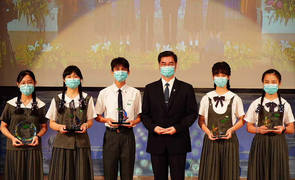 今年度「師公上人獎」有國小部陳曦、鄭綺紜,國中部陳宥方、陳柏霖,高中部顏絜儀五位獲獎者。獲獎者之一陳曦同學把今日的榮耀歸功於師長,因為老師們的陪伴與教導,引領同學們向上、向善,特別感性寫下「一朝沐杏雨,一生念師恩」,誠心感恩師長如沐春風的教誨。陳宥方同學則表示這次我能獲得師公上人獎,真的非常感恩師長們對我的肯定,國中三年,我最難忘的就是父母恩重難報經的展演,我們用戲劇呈現,大家一起努力讓展演更完美,同時也表達我對爸爸媽媽的感恩。