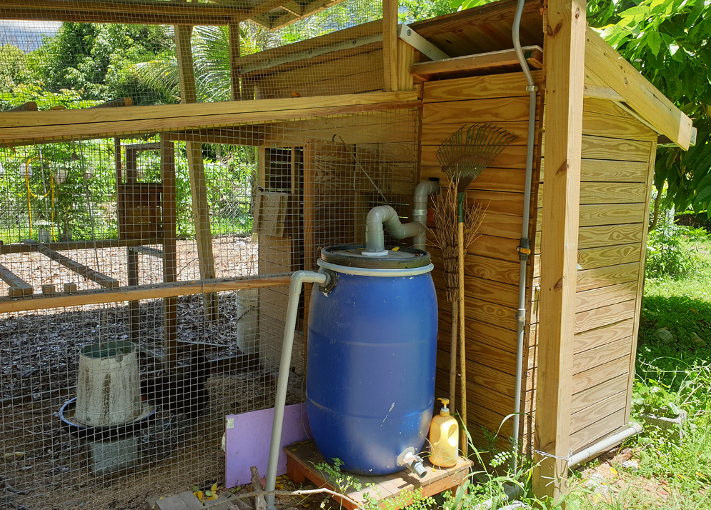 邱奕儒老師表示,透過雨水利用系統模型,協助大家了解水撲滿的原理,讓家家戶戶都可以自製水撲滿。最簡單的像是社區活動中心內雞舍的水撲滿,只需要有一個屋頂,水管和水桶,就可以肩負清理供水的工作。