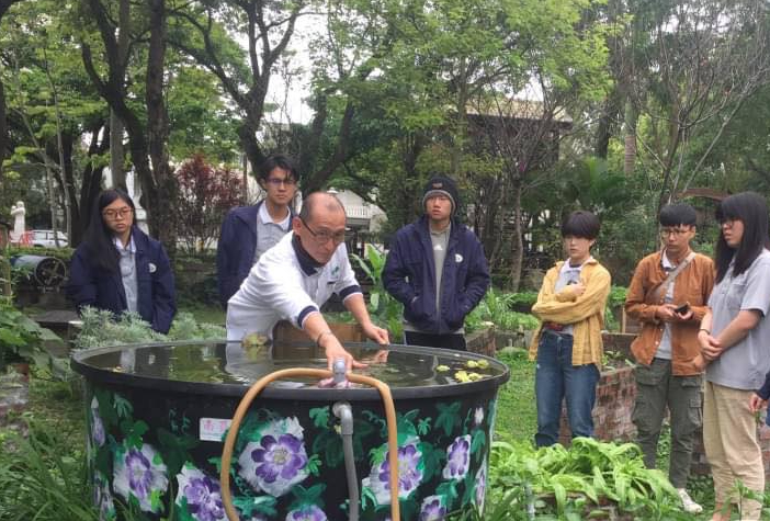 走出校園,落實社區!慈濟大學通識教育中心邱奕儒老師,以「4S逕流控制」、「屋頂雨水利用」、「廚房廢水回收」和「魚菜共生菜園水池」為碧雲莊活動中心設計了一套的水資源再利用系統,邱老師表示,自來水是非常乾淨的水,如果拿來沖馬桶、澆花非常可惜,透過這套系統,碧雲莊的馬桶使用雨水,甚至連洗碗槽的廢水都可以經過過濾成為種菜用水,不但可以省水也可以省錢更可生產糧食。