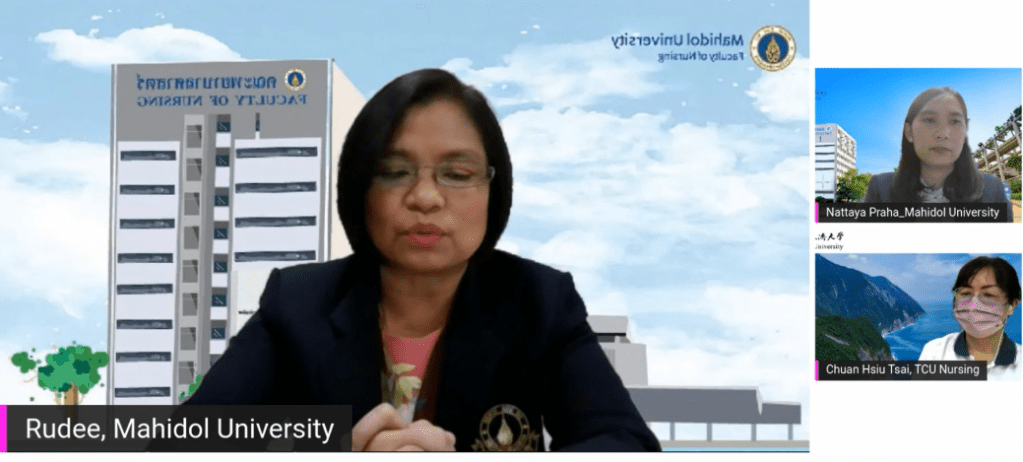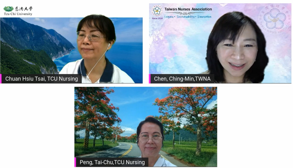 台灣護理學會陳靜敏理事長,鼓勵全球護理人發聲一致,共同打造更良好的護理環境。泰國馬希竇大學Rudee Pungbangkadee、Saowaluck Sukpattanasrikul教授分享泰國如何辦理線上跨國共學的護理課程,讓大家認識泰國文化下的護理教育。香港大學Kelvin Man Ping WANG教授介紹該校豐富的護理高科技擬真教學的環境與實務,像是模擬社區、VR護理教學等等,讓與會者大開眼界。日本筑波大學Shibayama, Taiga 柴山大賀教授分享在保護學生和進行替代實習的兩難當中,如何讓學生可以在不中斷學業的情況下持續精進。柴山大賀老師說:「疫情正是一次護理教育的轉機」。