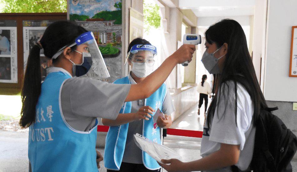 因應新冠肺炎疫情,慈濟科技大學要求考生和家長都必須戴口罩、量體溫,考生需攜帶報到通知單、國中學歷證明,家長得填寫健康調查表,才可進入校園。若考生尚在自主健康管理、居家隔離、確診或是發燒狀態,可填寫代理參加現場登記分發委託書,由家人代替考生撕榜。
