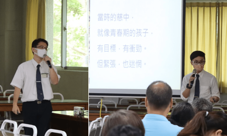 緊接著慈大附中由簡辰緯老師與徐振家主任分享新課綱五年來,慈大附中如何一步步讓全校師長共軌前行,藉由新課綱翻轉學校課程與再造學校品牌,其中徐振家主任帶領的食農藝趣課程更是獲得創新教案甄選的肯定,也讓外界驚豔慈大附中的課程能量。兩人幽默生動的分享也讓在場師長歡笑連連。
