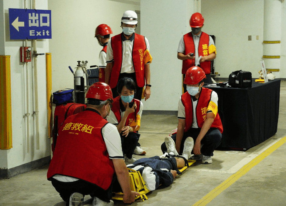 同時也模擬學校電力受損時,安全防護組演練動作及學生受傷時,搶救組及緊急救護組演練動作。搶救組人員利用擔架將受傷學生送至救護站治療,到就護站後,由護理師實施檢傷分類,輕傷人員進行簡易救護,重傷人員則利用救護車後送至臨近醫院進行救護,透過幾個模擬狀況的演練持恆居安思危。