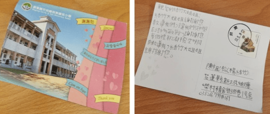 伴學結束後,學生親筆寫上感恩的話語,感謝大學伴無私的陪伴與教導,大學伴曾詠暄表示,小學伴的卡片讓她感到非常溫暖,使她更有動力繼續往後的陪伴,而實體課輔的模式讓大學伴吳秉洋覺得,在互動上可以更貼近學生,給予更細緻的教學,在伴學中也會適時照顧國中生的生活,在噓寒問暖中傳遞最貼切的關心。