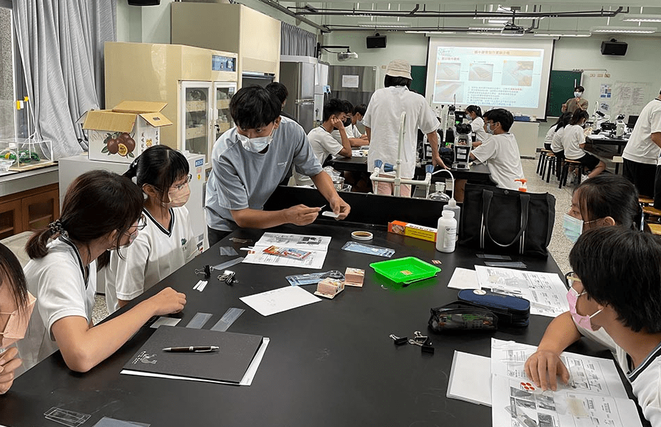 八月,炙熱的陽光在窗外燃燒,臺南慈中寧靜的校園一角,傳來熱烈的討論聲,原來是數理實驗班的同學們正在參與一場以大自然為師的科普講座。打破一般演說者與聽眾的隔閡,師生們正一起在實驗室裡燃燒旺盛的學習及實作精神,以做中學的方式參與這場別開生面的科普講座。