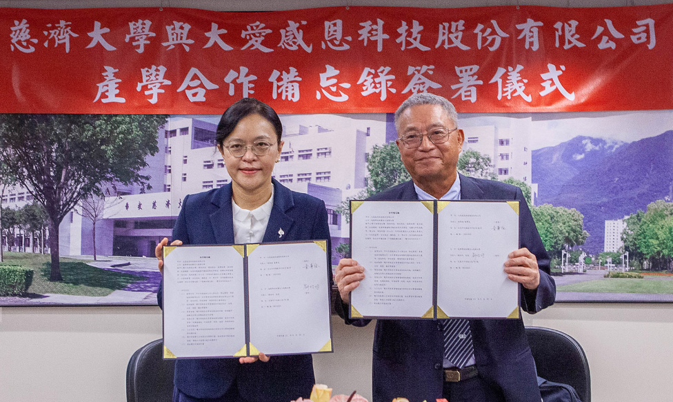 慈濟大學研究能量與產業連結!慈濟大學與大愛感恩科技於8月23日簽署產學合作備忘錄,雙方將就產品創新技術、學生實習、以及環保再生等多面項進行合作,落實研究為應用,未來慈濟大學的研究可以透過大愛感恩科技實體化,從校園推廣到社區,服務更多的民眾。