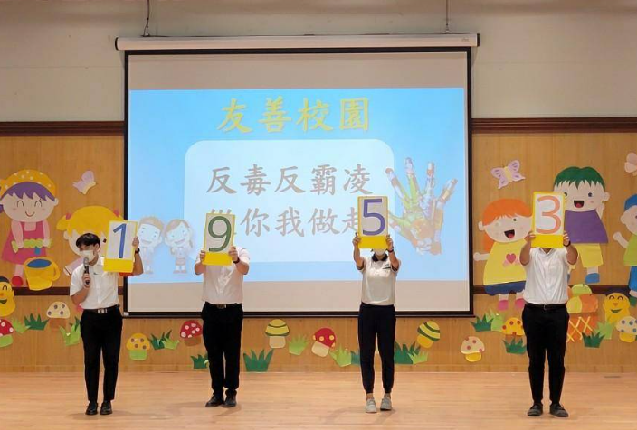 整個歡迎新生的活動,在開學典禮中達到最高潮,典禮在「地球的孩子」帶動唱中拉開序幕,除了將新生正式介紹給二到六年級哥哥姊姊認識,活動中還特別以剛入學小媁莉同學的「陪你勇敢,不再旁觀」的戲劇,告訴孩子心情沮喪時可找輔導老師,遇到陌生人或被欺負時,要勇敢說不或告訴老師,甚至透過「教育部1953反霸凌專線」,一起拒絕霸凌,共創溫馨友善的校園。