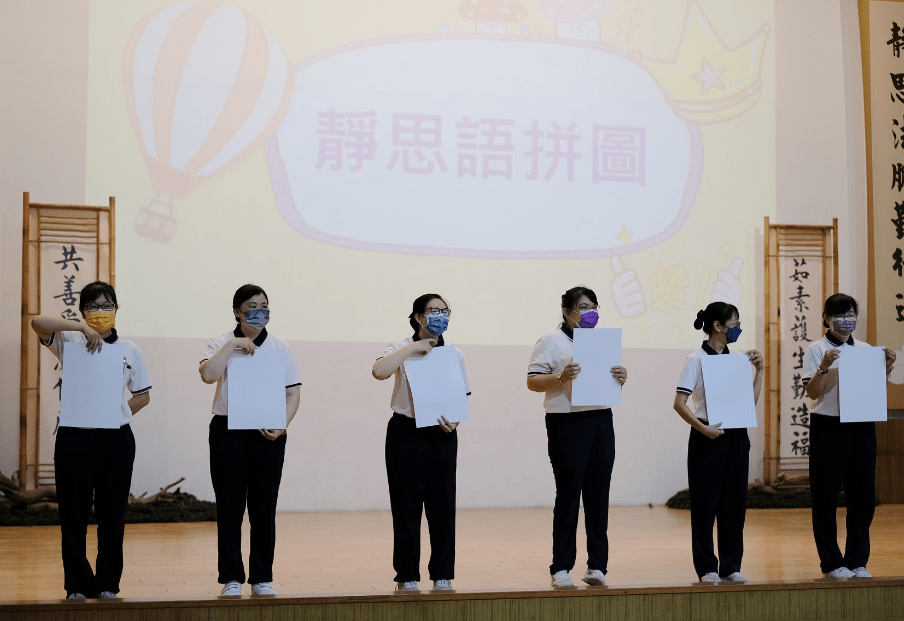 這些歌曲都蘊含著靜思語,在熟悉旋律的歌唱中,小朋友很快地就能琅琅上口,將靜思語記在心中;接著進行的是「靜思語拼圖」遊戲,靜思語在字字拆解與拼拼湊湊中,小朋友展現平時累積背誦靜思語的好功力:「不要小看自己,因為人有無限的可能」、「口說好話、心想好意、身行好事」,猜對的同時,全校師生異口同聲的唸出句句靜思語,也為迎接新學期播下期許,種下善念,透過遊戲不僅師生同樂,更能寓教於樂,讓平靜了好幾個月的校園,頓時熱鬧了起來,恢復了活力朝氣與繽紛色彩。